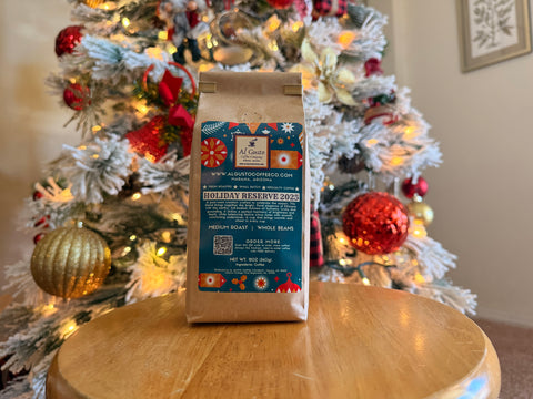 A post-roast creation crafted to celebrate the season. This blend brings together the bright, floral elegance of Ethiopia with the earthy, full-bodied richness of Sumatra. Lively and grounding, it strikes a perfect harmony of brightness and depth, while balancing festive citrus notes with smooth, comforting undertones. A cup that brings warmth and cheer in every cup.